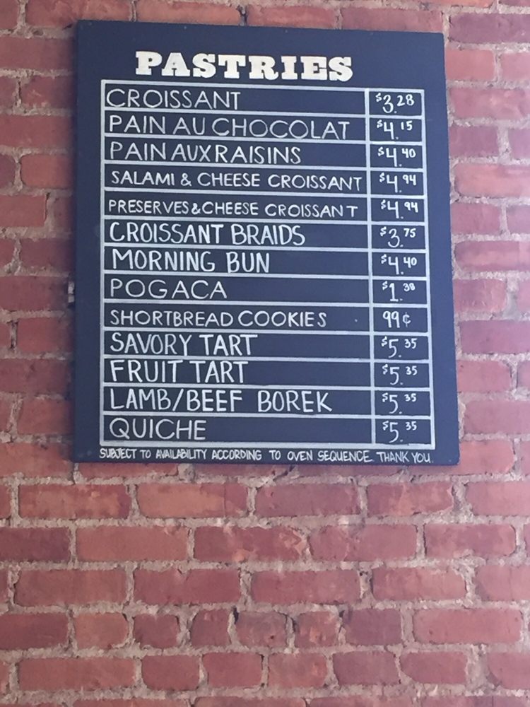 Sub Rosa Bakery Menu